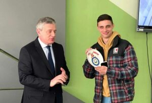 Ректор Ігор Цепенда вручив переможцю конкурсу Данилі Чвируку памʼятний приз та привітав всіх успішних блогерів, які прийшли на зустріч.
