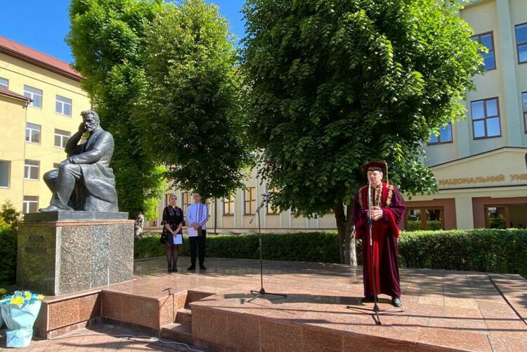 Відкрив урочисту Академію ректор Прикарпатського національного університету Ігор Цепенда: «Ми з особливою приємністю підходимо завжди до цієї події. 84 року тому був створений перший вищий навчальний заклад на Прикарпатті. Протягом всього періоду часу ми радіємо нашим випускникам, а їх більше 130 тисяч. Вони сьогодні зміцнюють, розбудовують та захищають нашу Україну. Головне завдання всіх закладів вищої освіти, це консолідувати зусилля. З одного боку, на підготовку кадрів, а з іншого, на те, щоб ми зберегли українську молодь для своєї держави. Дякуємо нашій владі за те, що протягом років відчуваємо підтримку, яка є взірцевою для інших регіонів, за спільні проєкти та їх реалізацію. Хочу також подякувати всім нашим студентам, які знаходяться тут. Ми впевнені в тому, що саме ви станете тією основою, яка буде творити нову Україну. Ваша громадянська мужність, прагнення до знань є підтвердженням цього. Велика вдячність нашим викладачам, які в складних умовах докладають чималих зусиль для того, щоб передати знання. Це є великою та неоціненною місією протягом життя».
