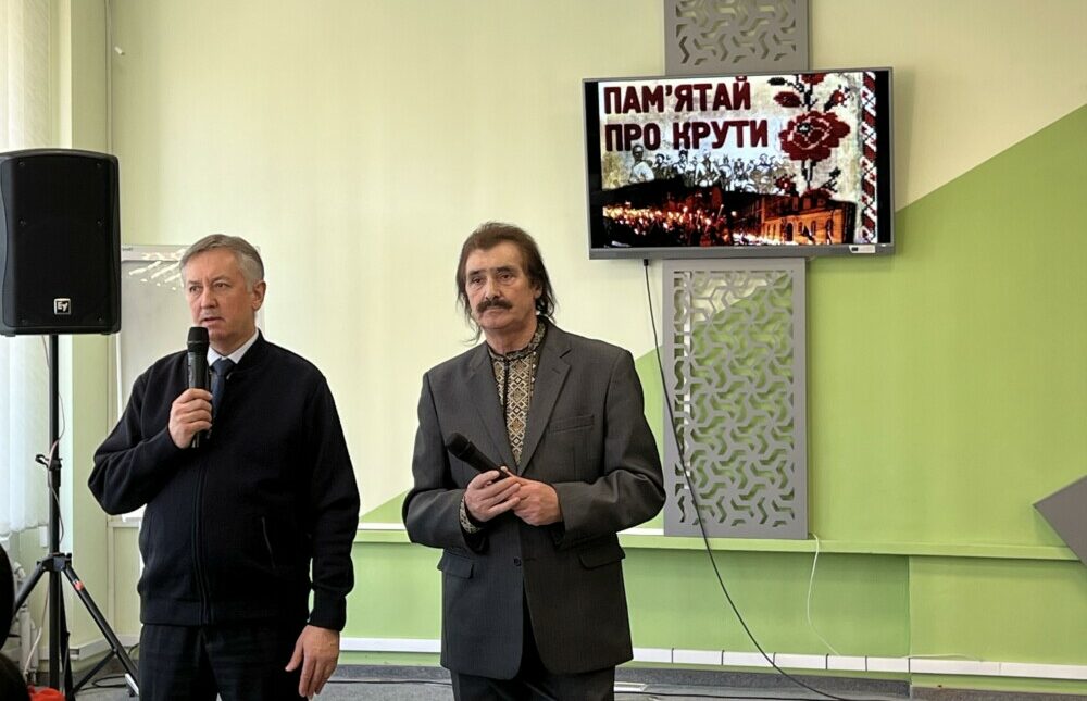 Під час заходу також було продемонстровано відео «Пам’ятай про Крути», яке нагадало присутнім про трагічні події 1918 року. У фіналі творчої зустрічі прозвучали пісні «Любіть Україну» та «Ой у лузі червона калина» разом зі студентами та заслуженою артисткою України Олесею Пасічняк, які стали символом любові до Батьківщини та віри у її майбутнє.