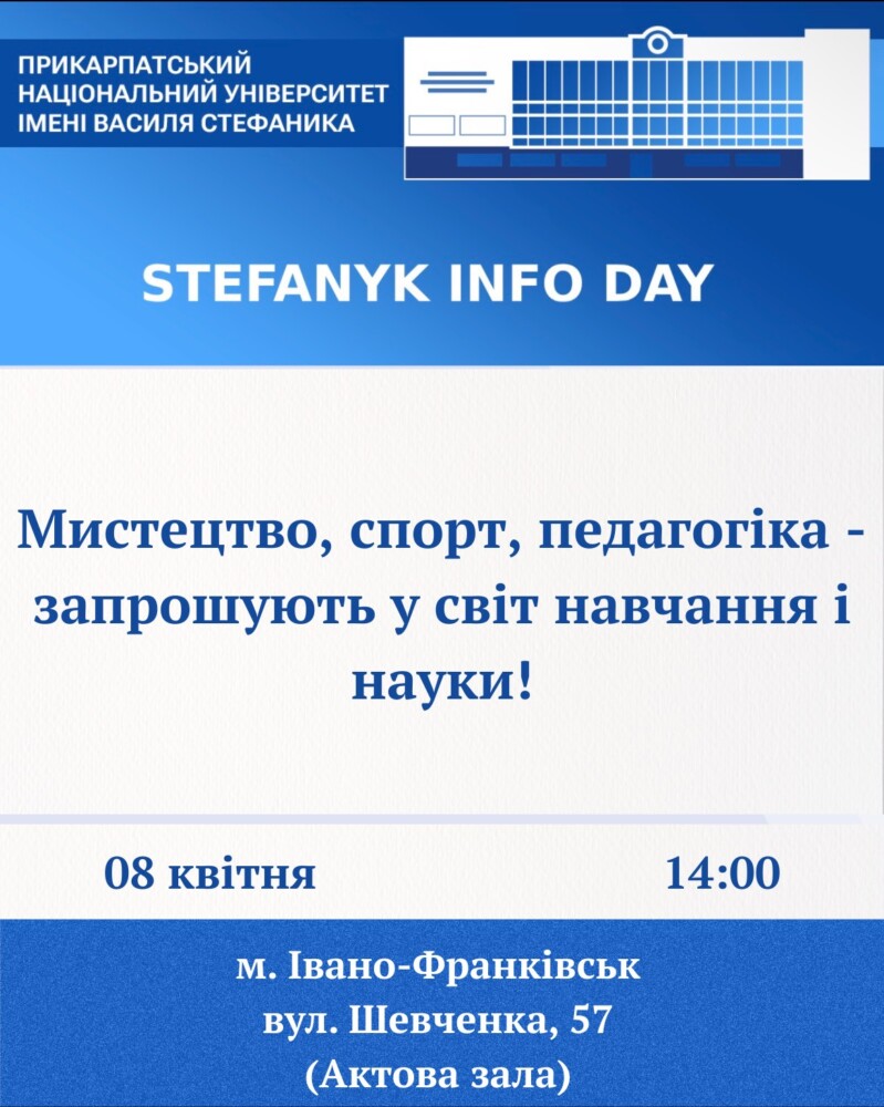 Хто бачить себе у фізичній культурі, туризмі ,спорті, візьміть своїх друзів, відкривайте нові можливості та будуйте своє майбутнє разом із нами! Stefanyk Info Day – твій перший крок до успіху!