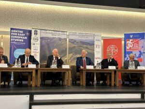 Відкрила день панельна дискусія «Відносини України та Польщі в умовах геополітичної конкуренції великих держав», у якій взяли участь відомі дипломати: колишні посли України в Республіці Польща Маркіян Мальський та Олександр Никоненко, колишній генеральний консул України в Кракові Михайло Бродович, а також колишній посол Польщі в Україні Ярослав Ключковський.