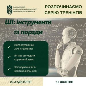 Запрошуємо викладачів та працівників університету на серію тренінгів по штучному інтелекту!