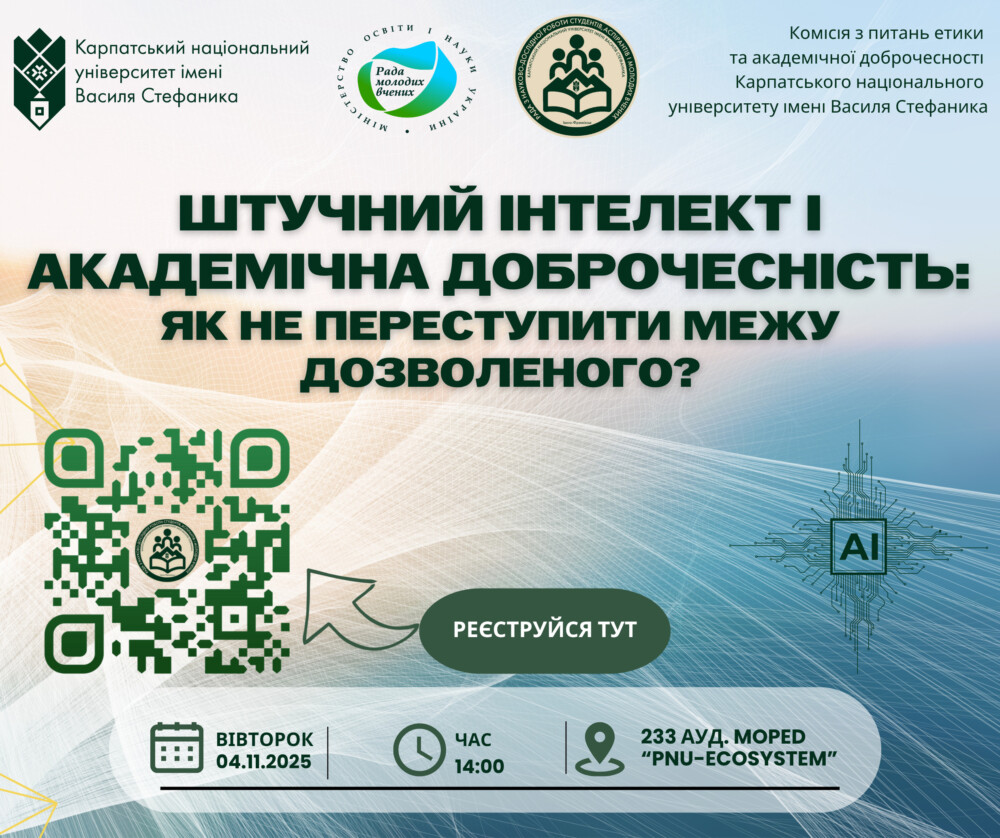 Запрошуємо до участі у тренінгу “Штучний інтелект і академічна доброчесність: як не переступити межу дозволеного?”, де ми спробуємо виявити ті самі законні межі та сучасні (й легальні!) механізми взаємодії науковця та ШІ разом з нашими спікерами.