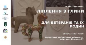 Карпатський національний університет імені Василя Стефаника спільно з благодійною організацією «БФ “СПІЛЬНИЙ ПРОСТІР”» запрошує ветеранів та членів їхніх родин взяти участь у відкритому творчому занятті з ліплення з глини.