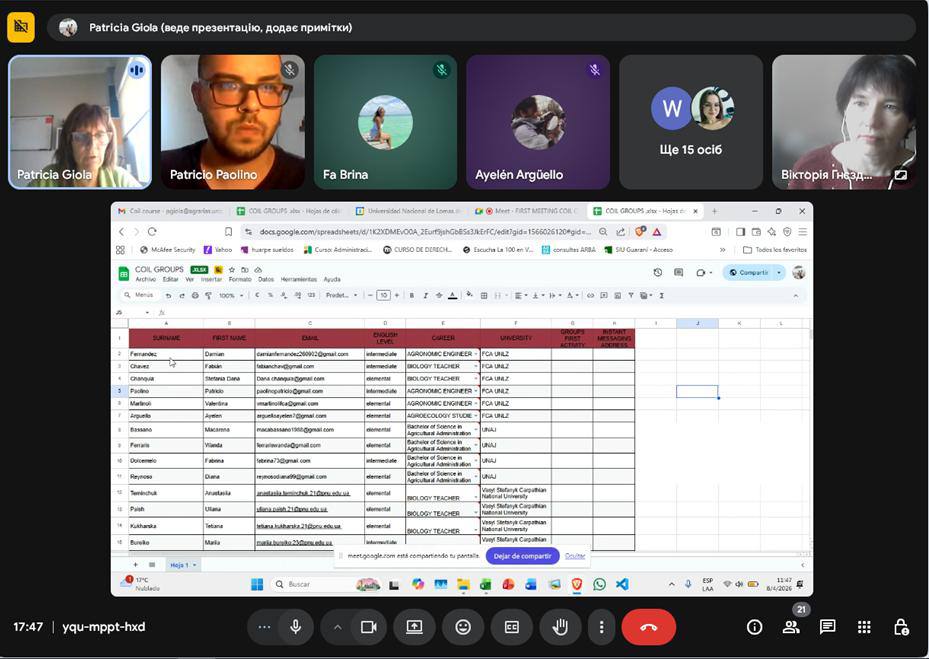 Відбулася перша онлайн-зустріч у межах міжнародного COIL-проєкту «Bio Bridge: Sustainability and AI Across Borders – Ukraine & Argentina», що об’єднує студентів України та Аргентини навколо тем сталого розвитку та використання штучного інтелекту.